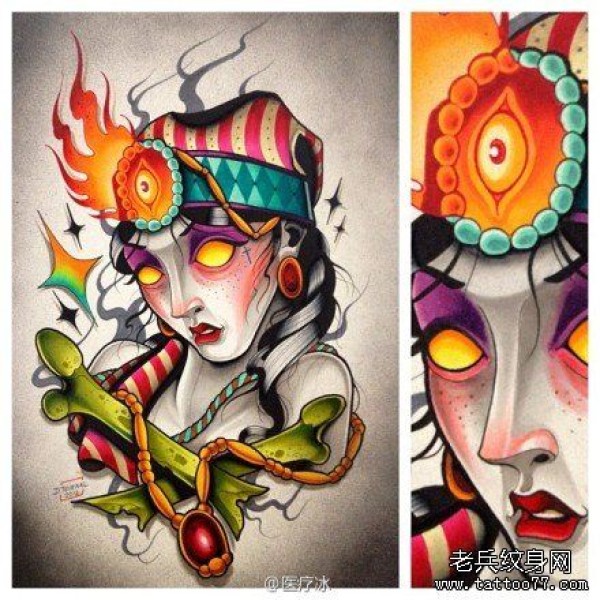 能面万媚纹身手稿_52张日式能剧面具纹身手稿图案素材欣赏