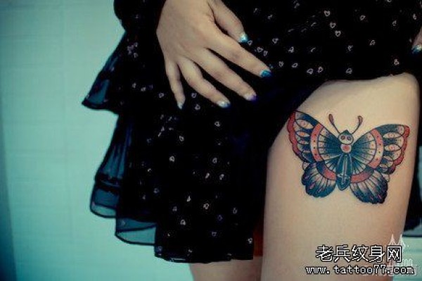 美女腿部好看经典的蝴蝶纹身图案