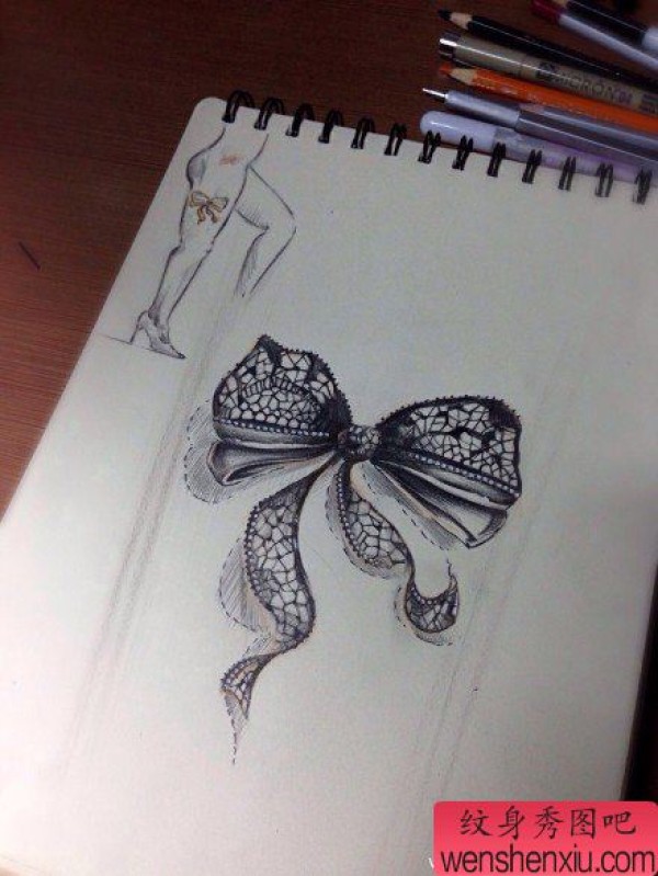 一套时尚精美的蕾丝蝴蝶结纹身图案