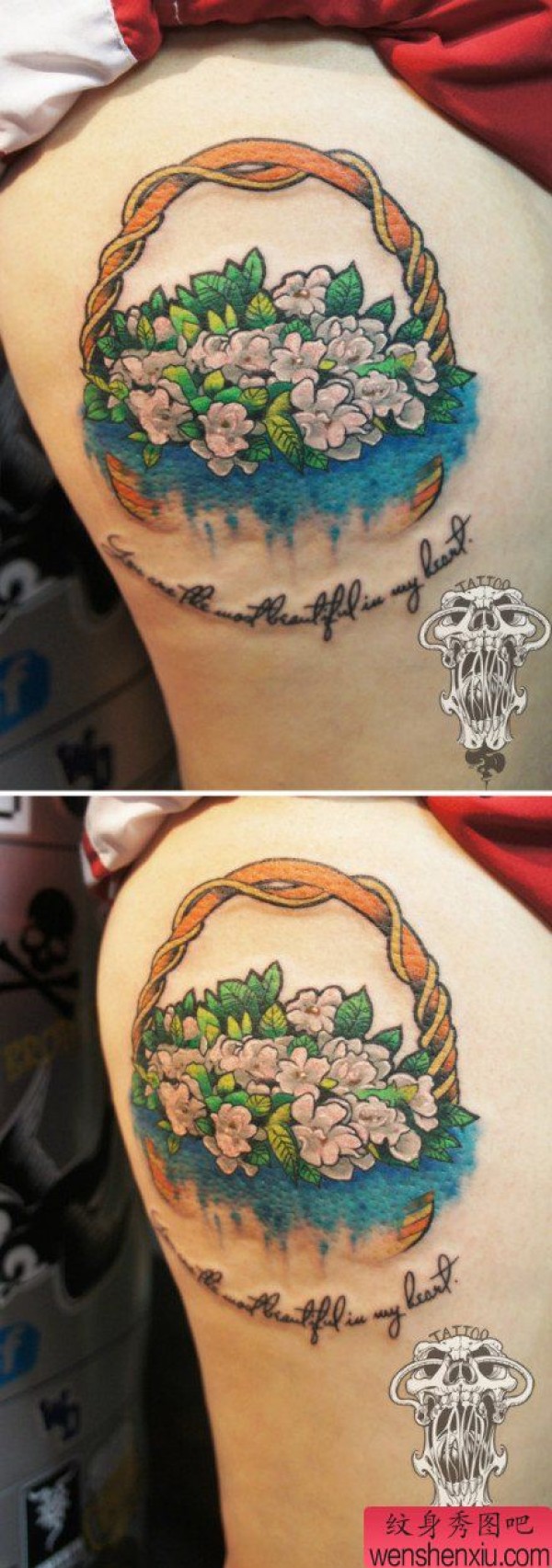 手臂好看时尚的花篮纹身图案