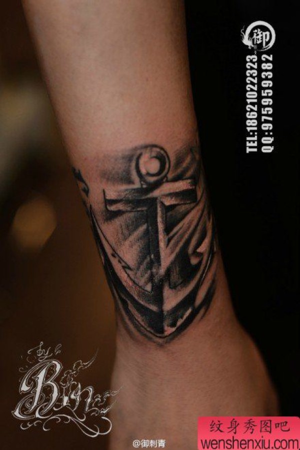 小手臂一张写实精美的船锚纹身图案