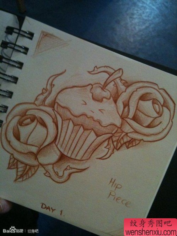 时尚时尚的一张冰激凌玫瑰花纹身手稿