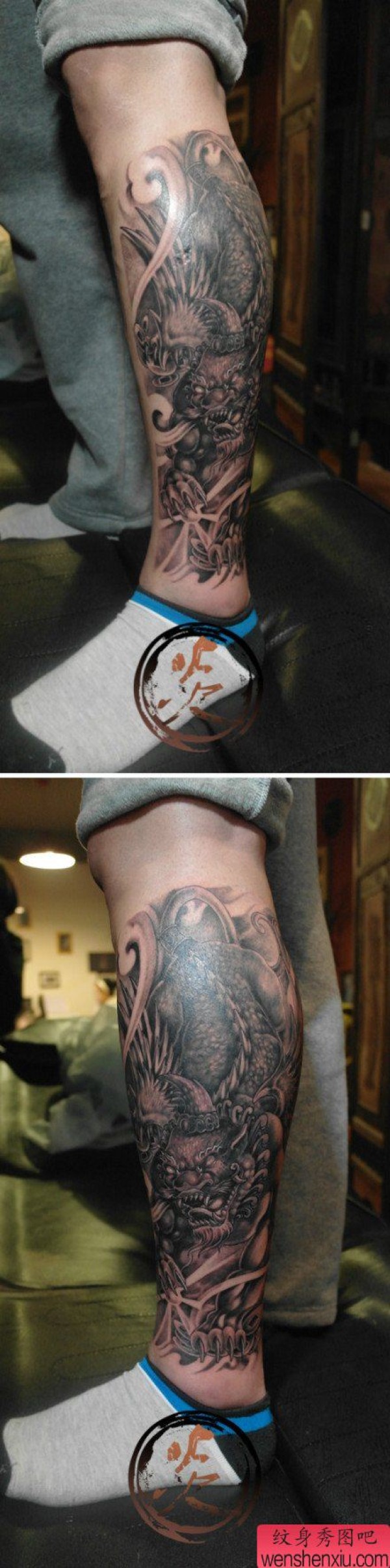 男士腿部时尚很酷的貔貅纹身图案