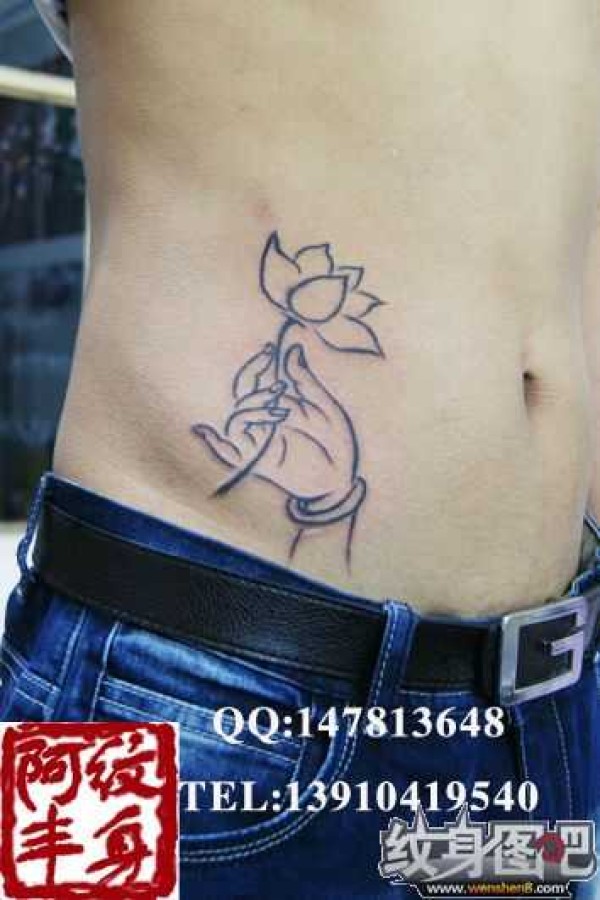 腰部荷花纹身,北京刘家窑纹身#阿丰纹身#