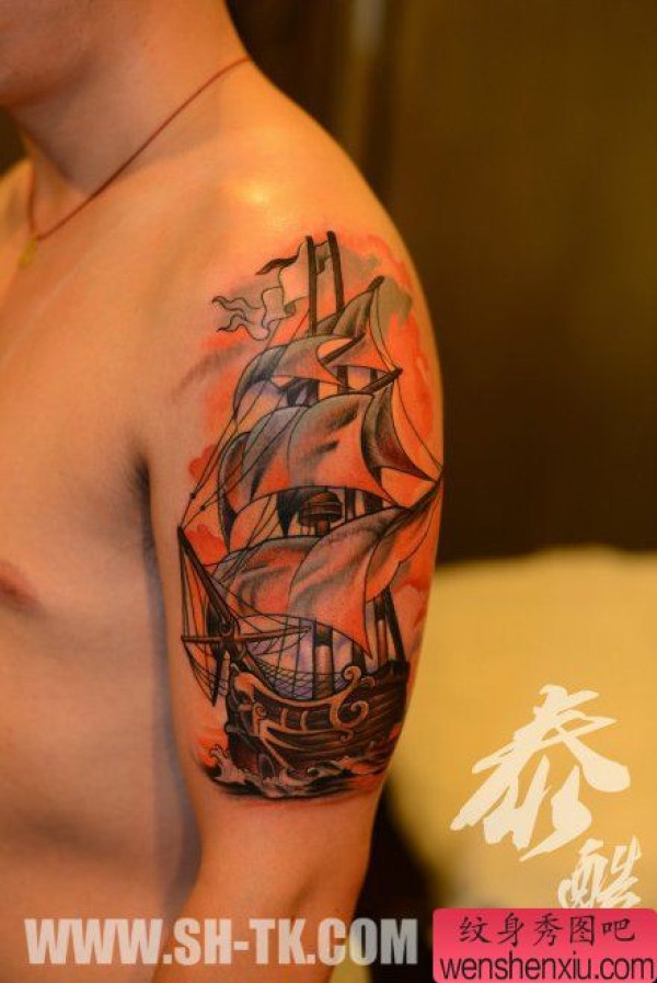 手臂时尚精美的帆船纹身图案