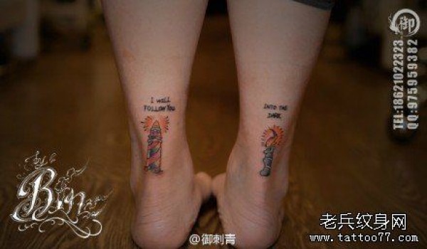 女生脚腕小巧时尚的灯塔与蜡烛纹身图案