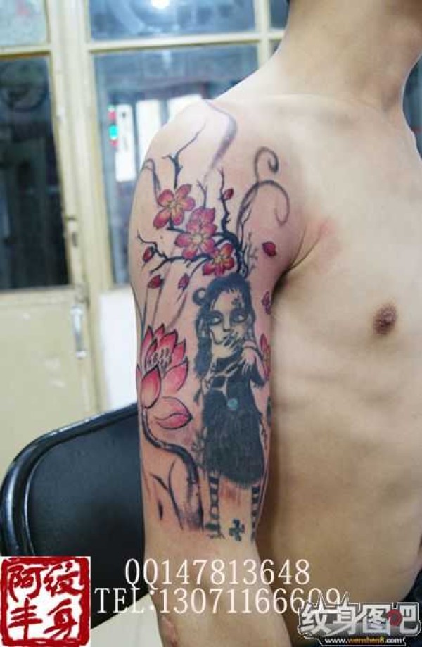 女生肩花纹身_15张女性双肩对称的肩花纹身图案作品图片