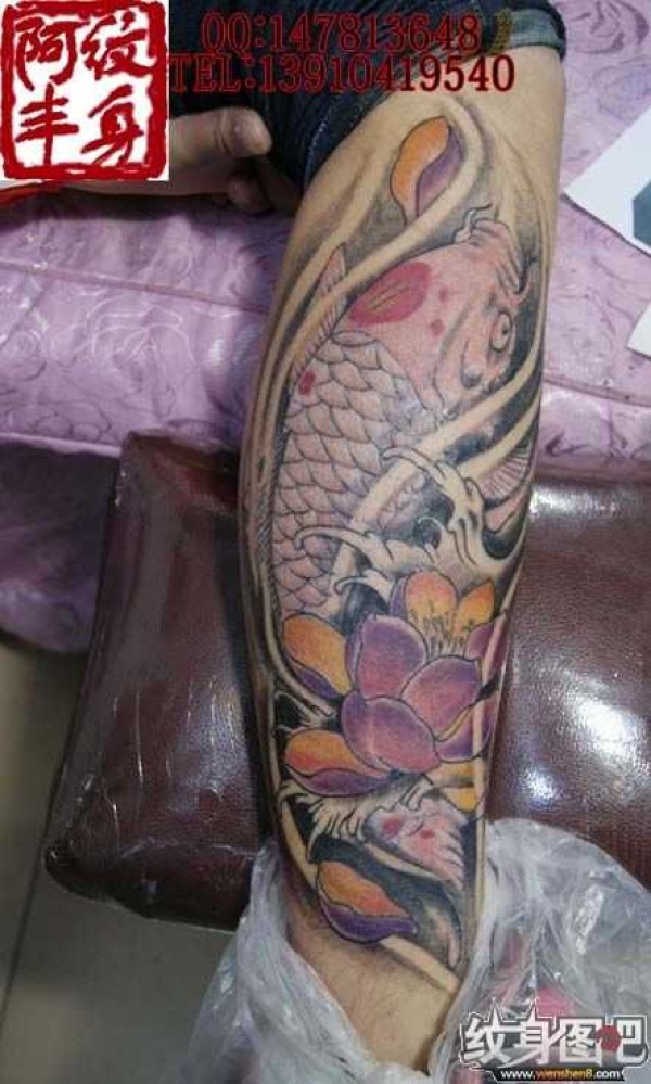 腿部鱼纹身作品#纹身图片#阿丰纹身