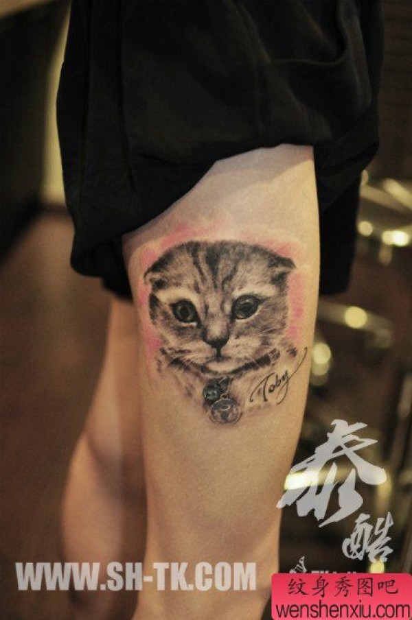 女生腿部呆萌可爱的猫咪纹身图案