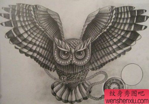 时尚很帅的一张黑白猫头鹰纹身手稿