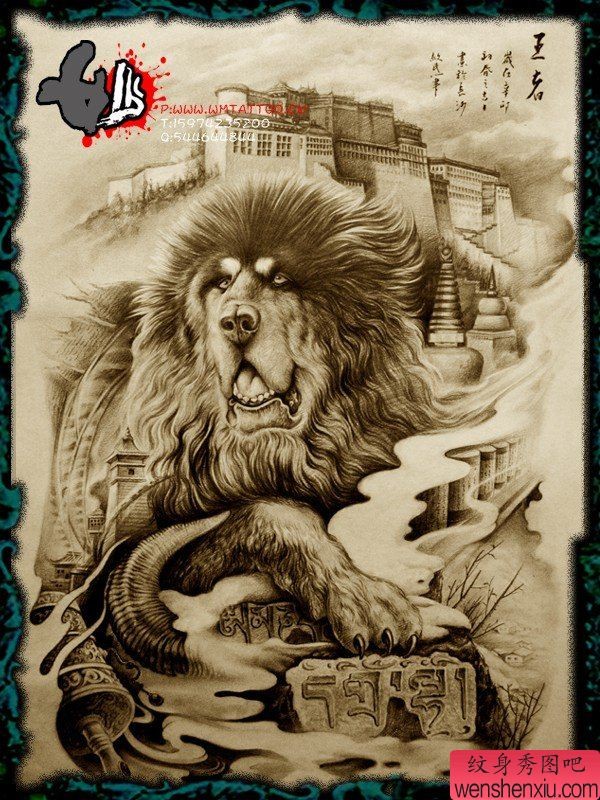 分享一张个性的藏獒纹身图案