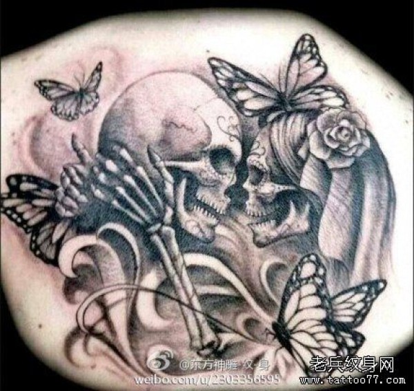 时尚很帅的一张骷髅夫妻纹身图案