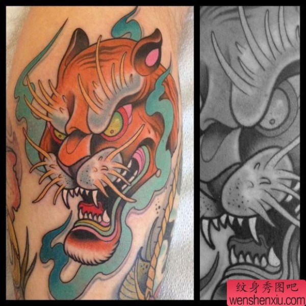 分享一张school老虎纹身图案