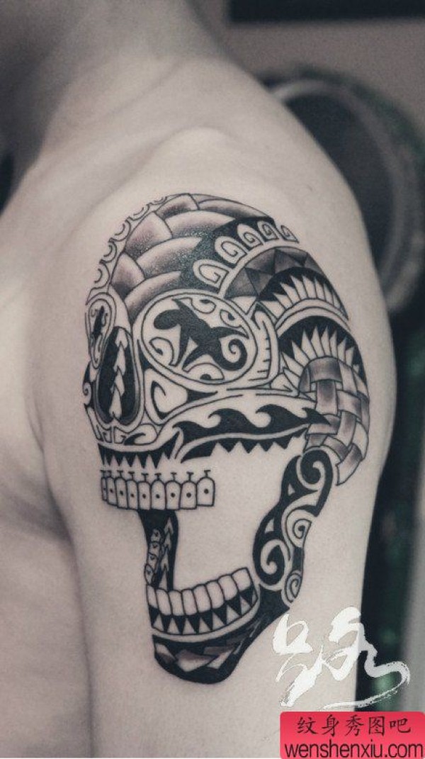 手臂时尚时尚的一张图腾骷髅纹身图案