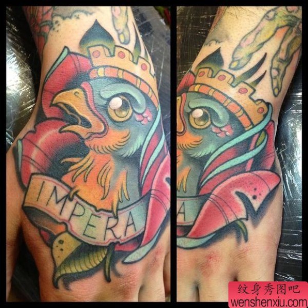 手背上一张school风格小鸟纹身图案
