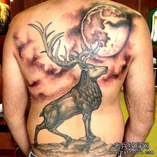 分享一张好看的满背鹿纹身图案