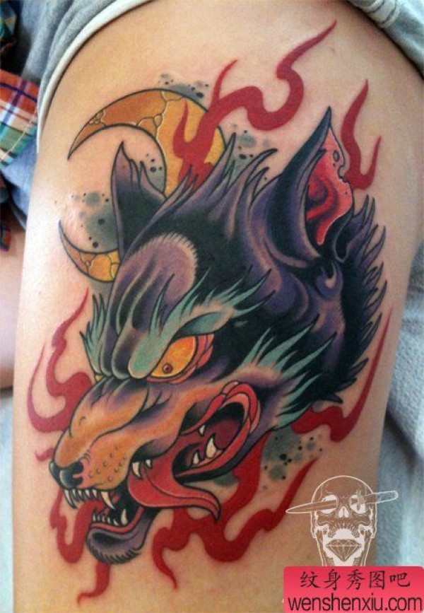 分享一张霸气的欧美狼头纹身图案