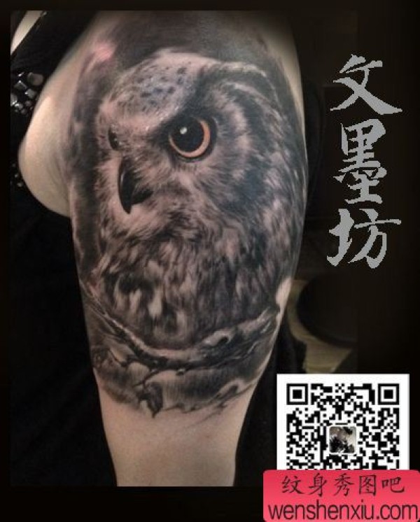 纹身图吧为你分享一张霸气时尚的大臂猫头鹰纹身图案