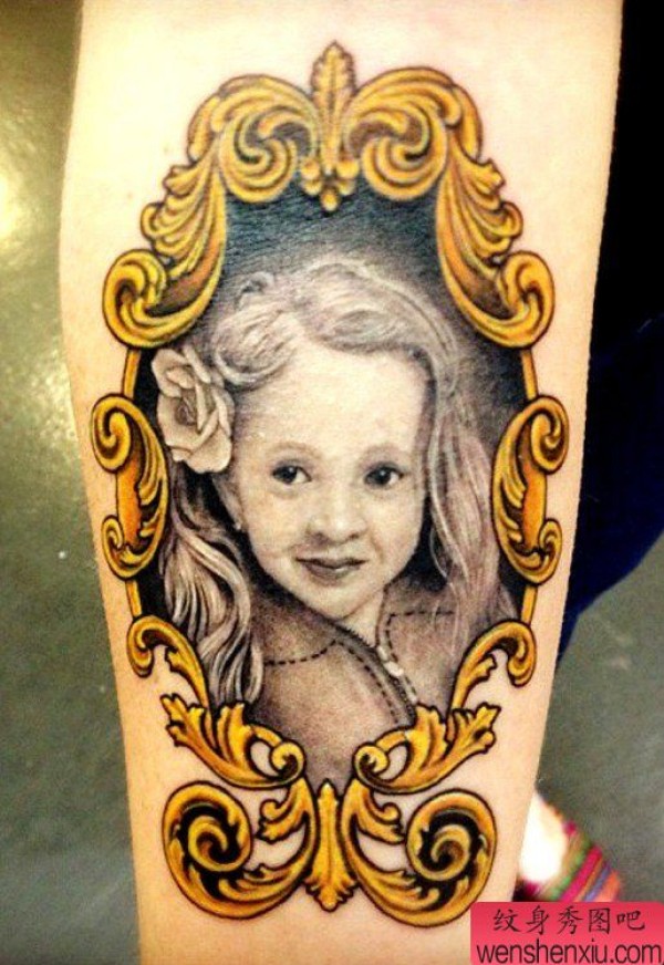 一张欧美小女孩肖像纹身图案