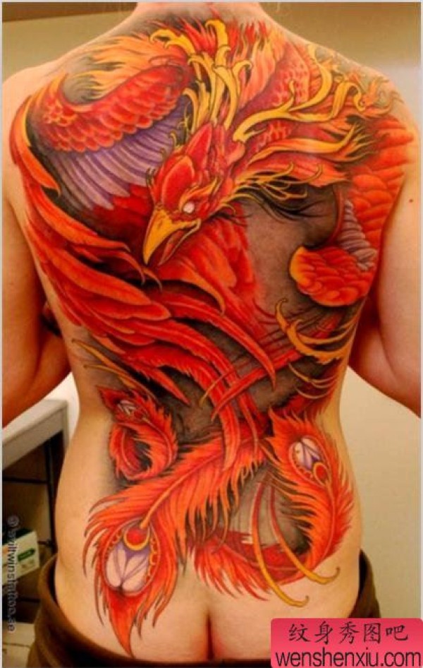 纹身图吧一张传统满背凤凰纹身图案