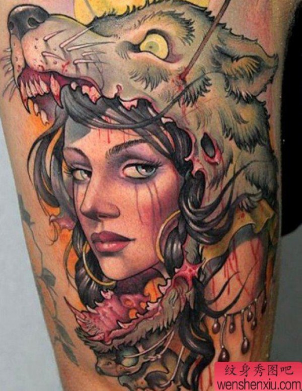 老兵纹身分享一张欧美狼头人物纹身图片
