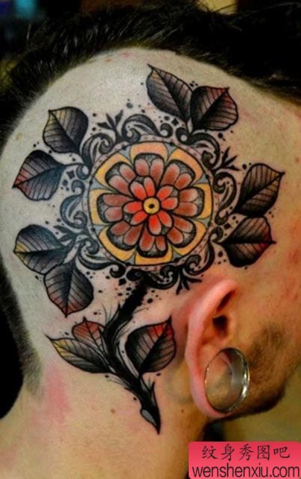 头上一张欧美风格花纹身图案欣赏