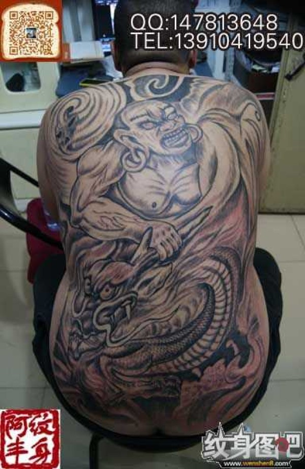 #后背纹身#将龙罗汉纹身
