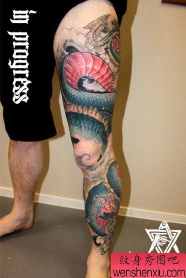 老兵纹身分享一张传统花腿龙纹身作品