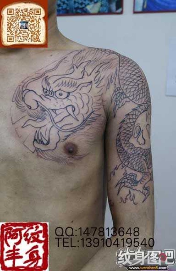 日式手彫刺青作品—半甲龙很感谢客户认可手彫刺青,手彫是日本纹身的手工雕刻技术,时间可以追溯到日本17世纪的江户时代。19世纪,手彫技术被日本黑帮挪用,被用作入会仪式,象征着从此就是江湖中人。在日式传统