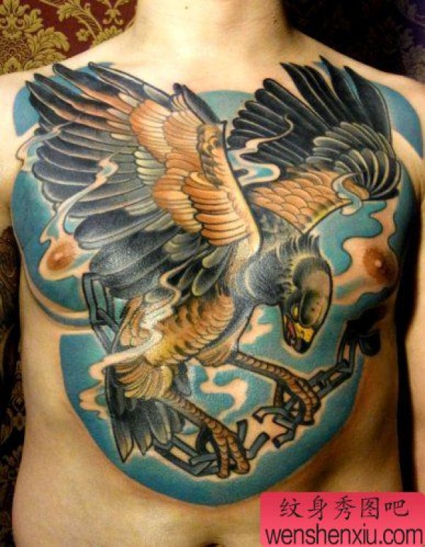 胸口上一张漂亮的欧美老鹰纹身作品