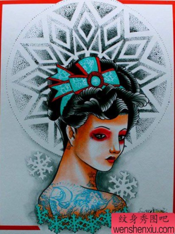 能面万媚纹身手稿_52张日式能剧面具纹身手稿图案素材欣赏