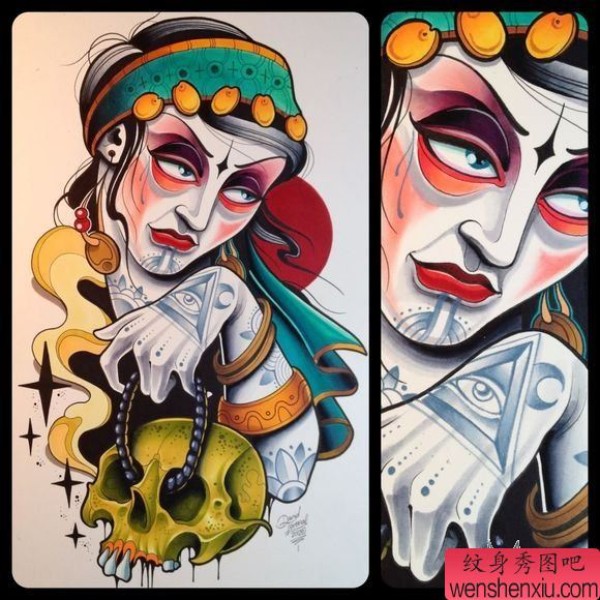 new school tattoo吉普赛女巫纹身图案手稿图片