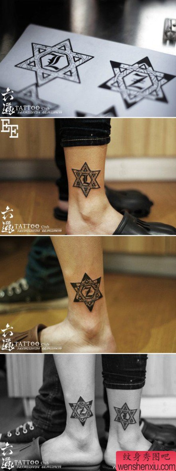 小腿时尚时尚的一张情侣六芒星纹身图案