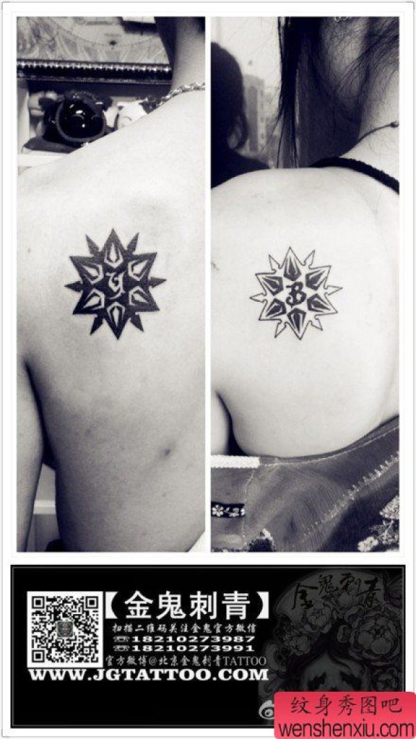 女生肩背时尚的情侣图腾星星纹身图案
