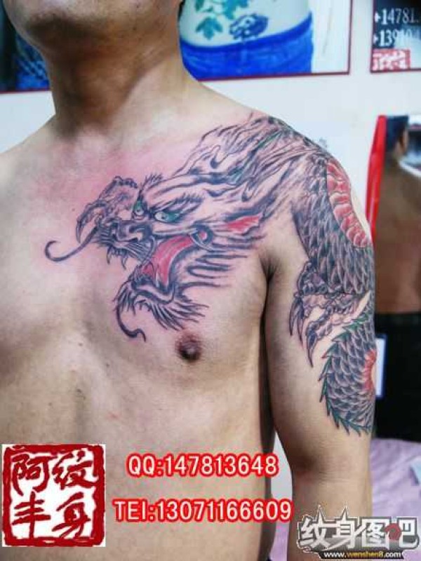 霸气过肩龙半甲纹身