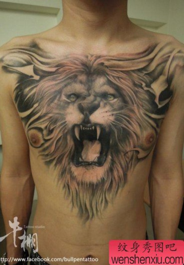 老兵纹身图吧分享一张胸口霸气狮子纹身作品