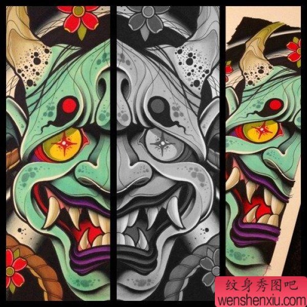 能面万媚纹身手稿_52张日式能剧面具纹身手稿图案素材欣赏
