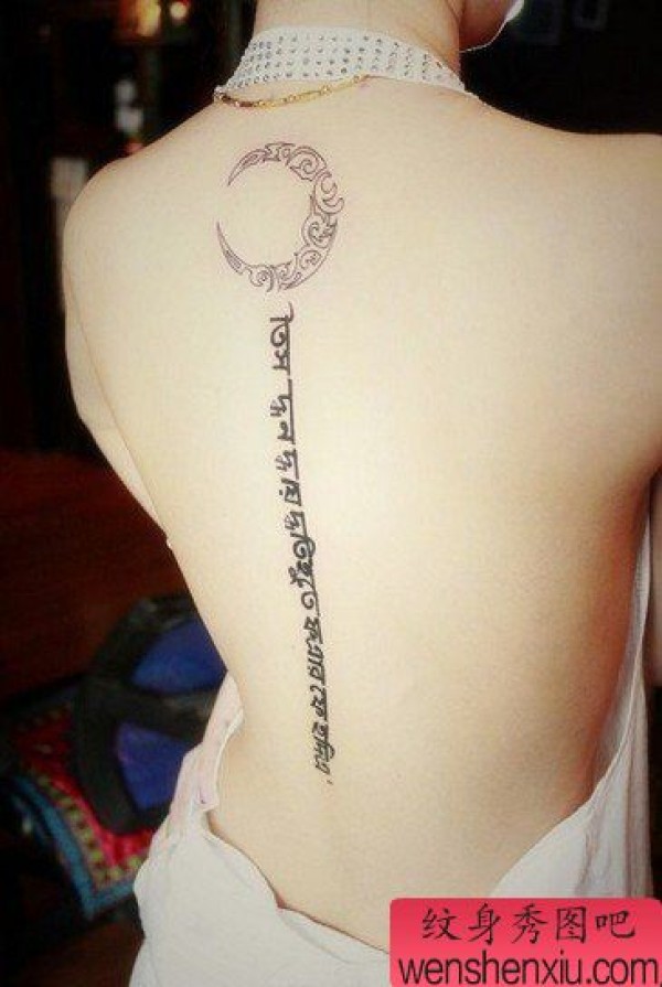 女生脊椎字母纹身图