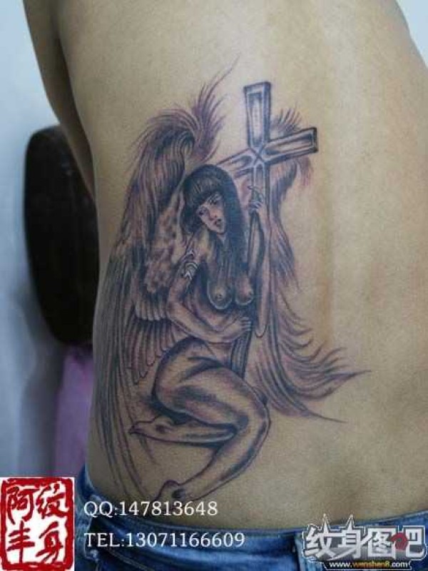 分享一款腰部时尚性感的蝶恋花纹身图案_腰部纹身图案大全_纹身图吧