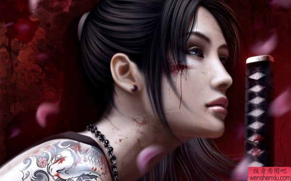 2014年美女剑客纹身壁纸图片高清纹身壁纸桌面图片下载