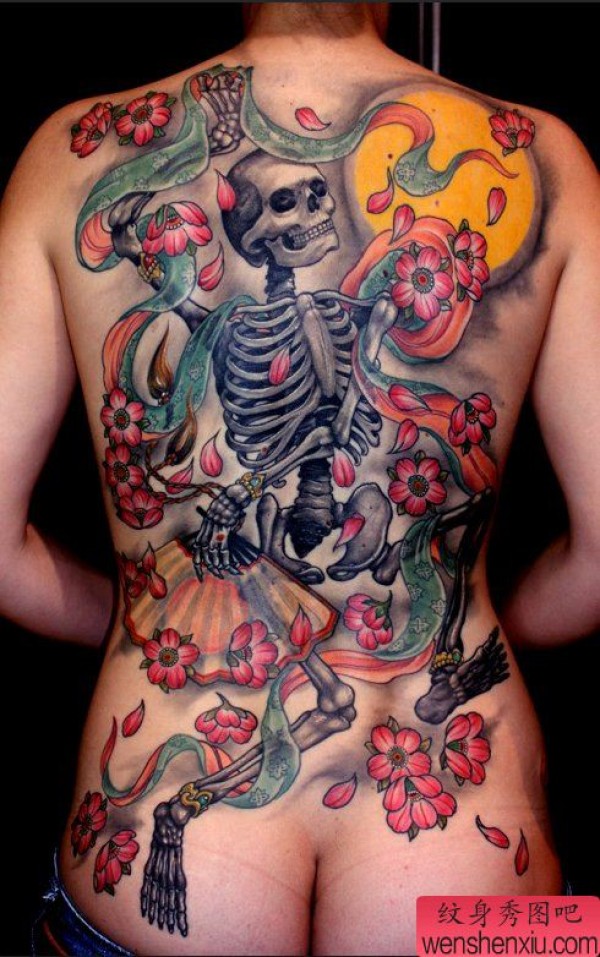 分享一张个性的满背骷髅纹身图案