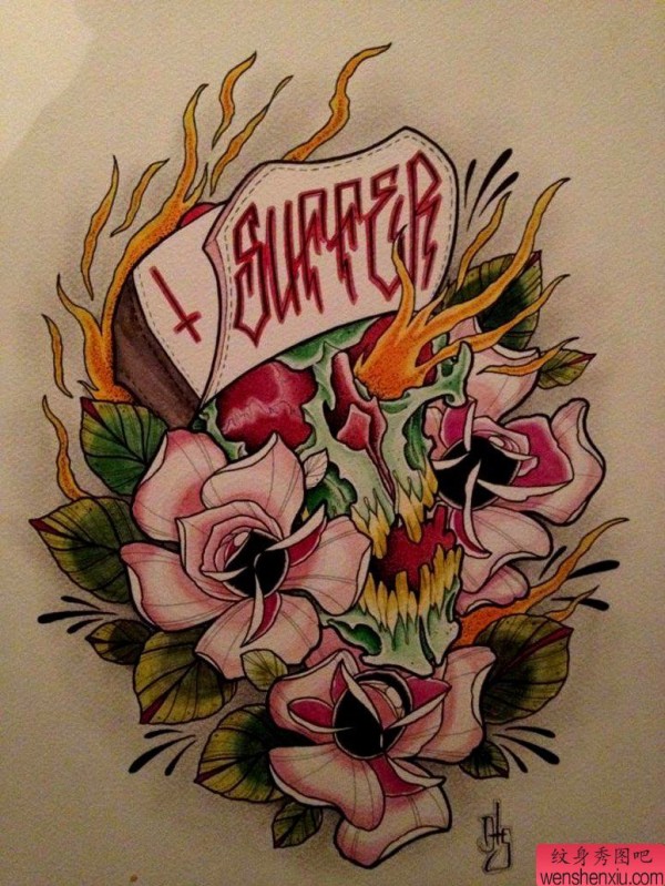 老兵纹身图吧分享一张school风格骷髅纹身作品