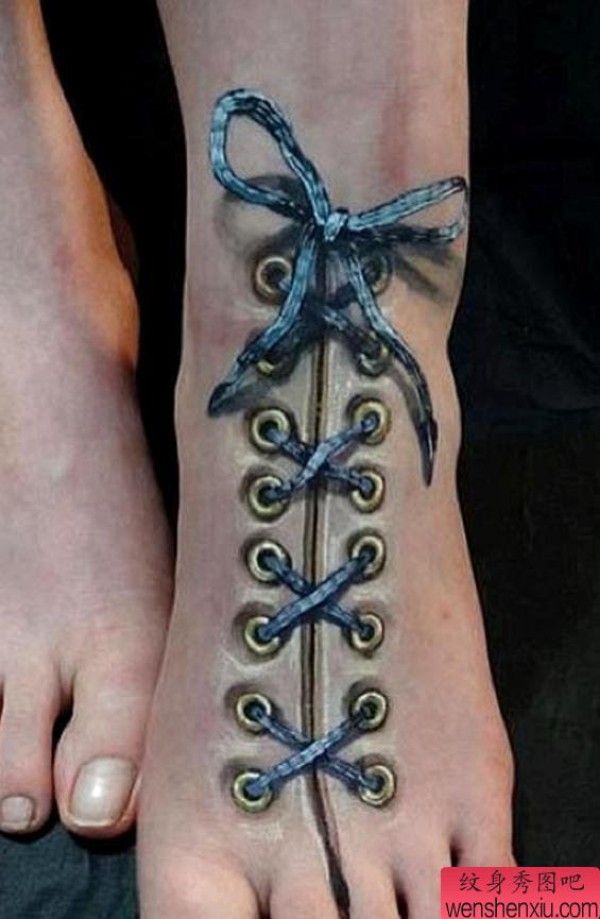 脚背上一张超逼真的3D纹身图案