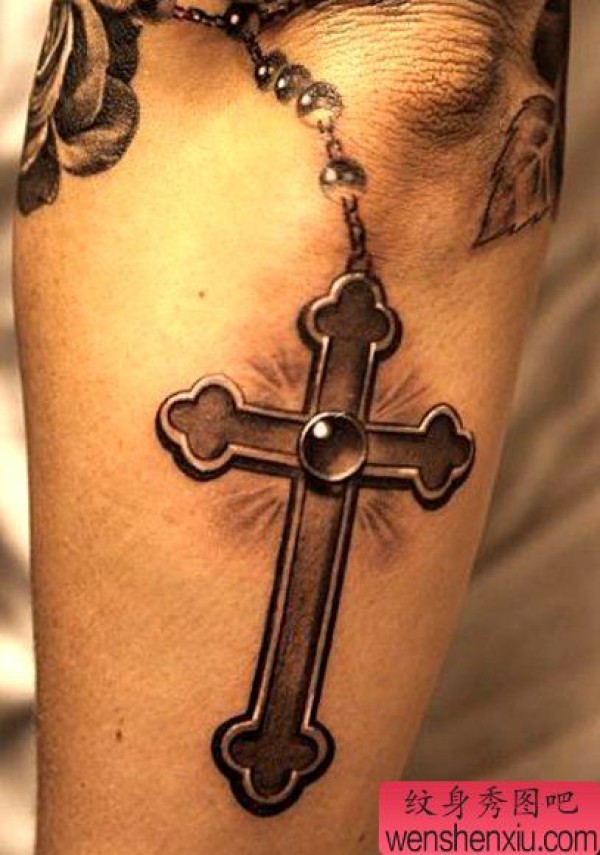 分享一张精致的十字架纹身图案