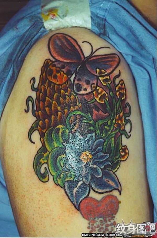 女生肩花纹身_15张女性双肩对称的肩花纹身图案作品图片