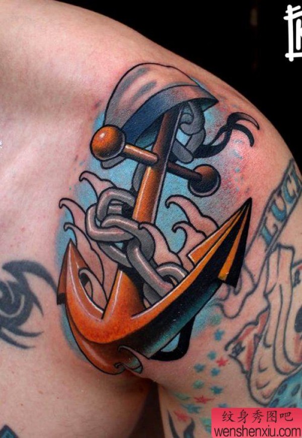 分享一张欧美漂亮船锚纹身图案
