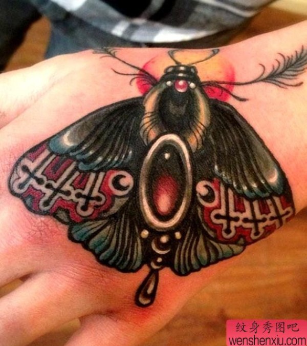 给大家分享手背上一张个性蝴蝶纹身图案