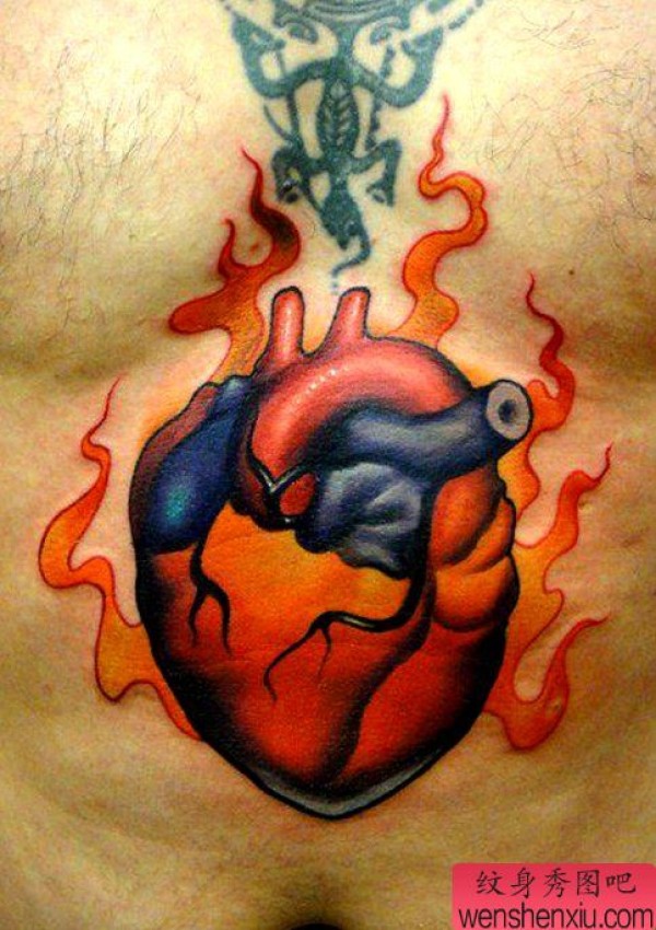 欣赏一张胸口心脏纹身作品