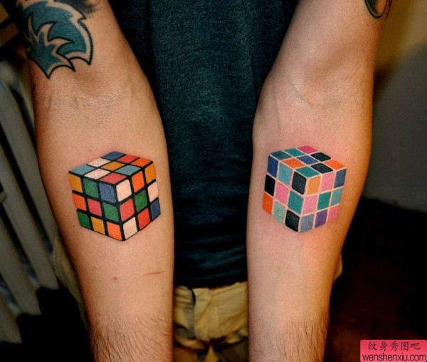 一张个性小臂内侧魔方纹身图案介绍给大家