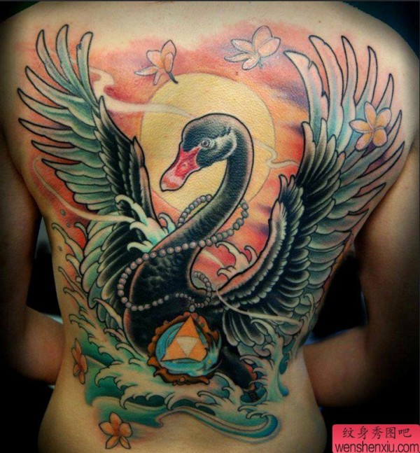 老兵纹身图吧分享一张满背天鹅纹身作品